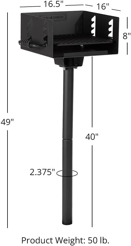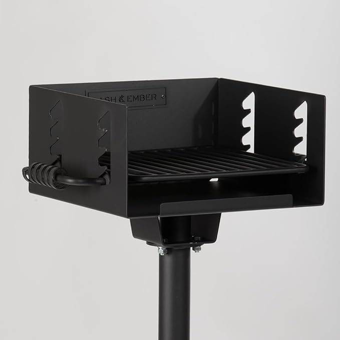 Ash & Ember Park-Style Grill, 256 Sq. In Charcoal Grill, 16.5x16x8, Single Post Outdoor Cooking Grill for Backyard BBQ, Camp Grilling Barbecues, Small-Sized Parties, Grill Delicious Meats, Vegetables
