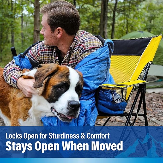 - Comfortable Outdoor Chairs – Get comfortable with this foldable chair featuring no-sag seating, durable diamond ripstop polyester, and breathable mesh on the seat back.