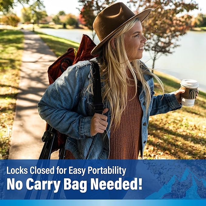 - Unique Locking Feature – Great for Mobility! Just lock open for extra stability so you can relax and enjoy your time outside. When it's time to leave, the locks shut quickly for easy transport.