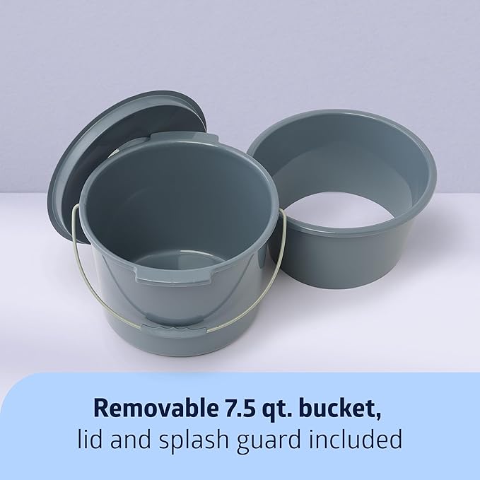 - EQUIPMENT COMES STANDARD—Commode comes with removable 7.5 qt. bucket, lid and splash guard