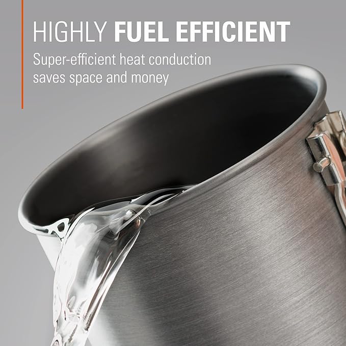 - Our proprietary alloy, halulite, conducts heat more efficiently and evenly than titanium; Save space and money when you leave that extra fuel at home