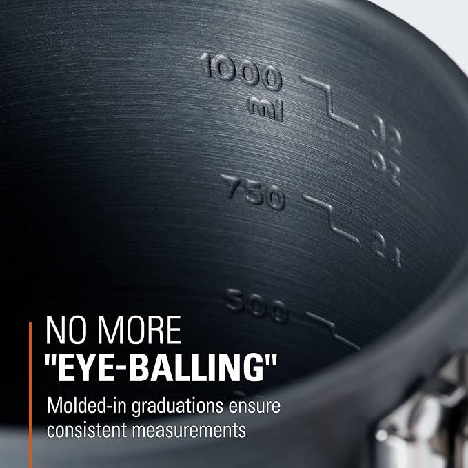 - Molded-in graduations give you consistent measurements every time; Fuel, stove and pot all “nest” inside the stuff sack for convenient carrying
