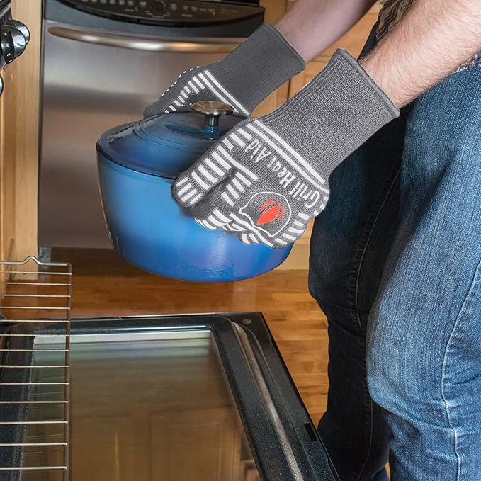 - 🔥 WORLD-CLASS SERVICE & PROTECTION: Backed by a 1-year warranty, these fireproof heat gloves for grilling ensure your safety. Perfect as baking gloves, kitchen gloves for oven, grill mitts for outdoor grill, heat proof gloves.