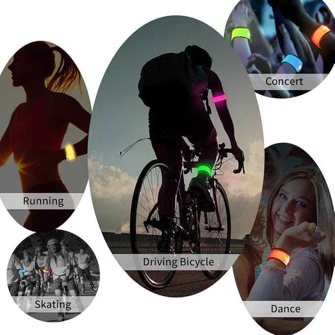 - Multiple Wearing Styles: Light up wristbands is comfortable to wear, and can be worn anywhere on the wrist, arm, ankle, etc. to improve visibility. Light up slap bracelets size: 35 cm x 4 cm