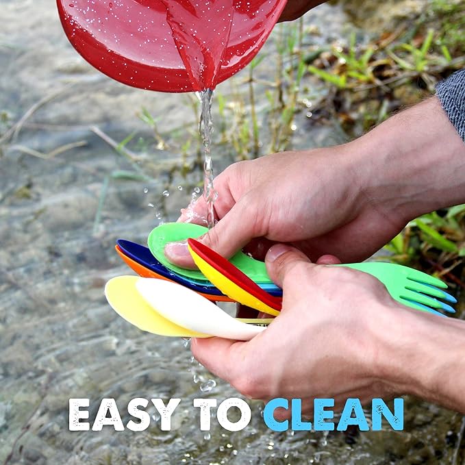 - High-Quality Construction: Forget cheaply made sporks that bend and lose shape; this camping spoon, fork, and knife combo is made from high-quality, BPA-free Tritan plastic; our camping utensils will accompany you and your family for years of adventures