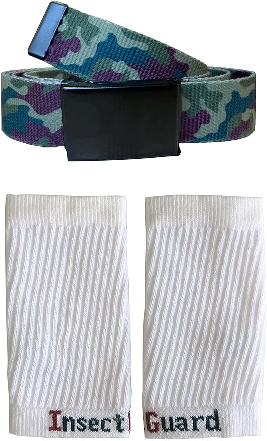 - This package includes 1 54 Inch Long Length Adjustable Camouflage Belt and a Pair of White 7 Inch Long Leg Tick Gaiters or Sleeve Cuffs. Registered to Repel MOSQUITOES, TICKS, FLIES & Other Insects..