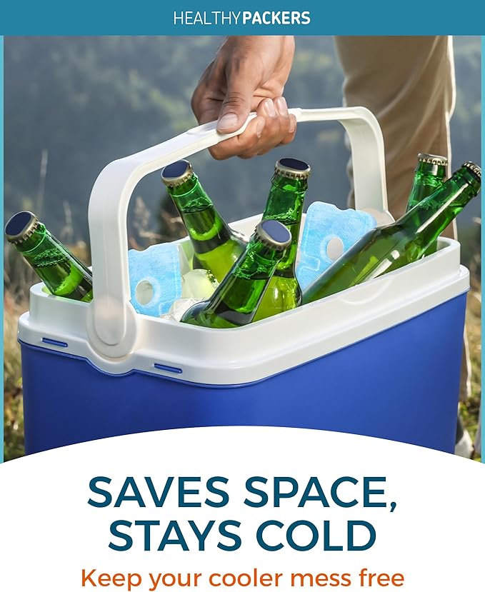 Healthy Packers Ice Packs for Lunch Boxes & Coolers - Freezer Packs - Original Cool Pack | Cooler Accessories for Beach, Camping & Fishing | Slim & Long-Lasting Reusable Ice Pack for Cooler