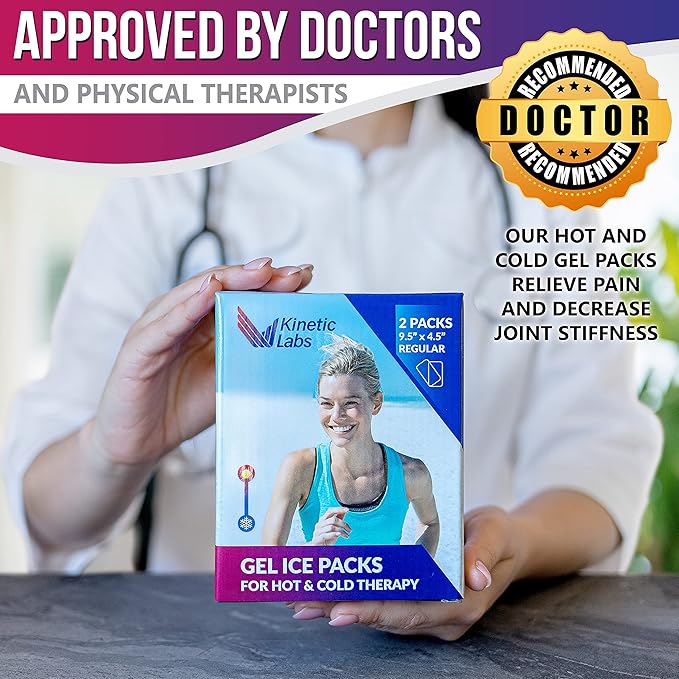 Gel Ice Packs for Injuries Reusable (2 Pack) 9.5" x 4.5" – Gel Cold Packs by Kinetic Labs – Flexible & Soft Packs for Knee, Shoulder, Back (Regular)