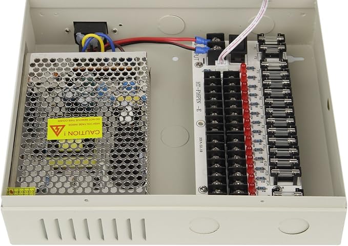 16 Channel Port 12V DC 10 Amp Amper with PTC Fuse Distributed Power Supply Box for CCTV DVR Security System and Camera or Cameras