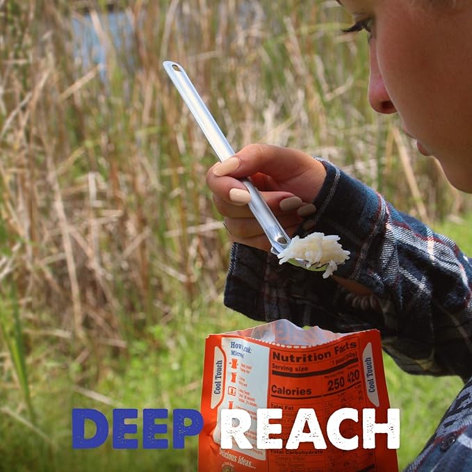 - Lightweight & Portable: This long handled spoon & camping spork scoop up hot soups, cold oats, and everything in-between; durable yet lightweight, it's easy to stash in your gear; an ideal choice for outdoor adventures, backpacking utensils, MREs, travel, & more