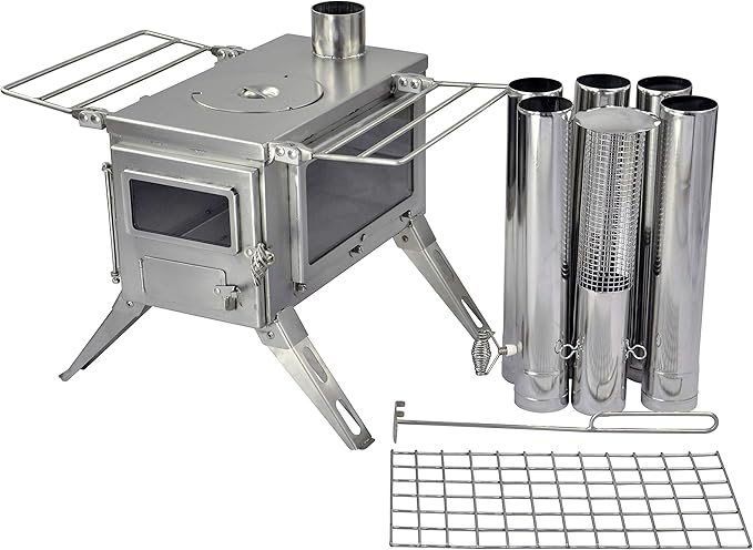 - Designed for Tent and Shelter Use Ideal for hot tents, teepees, canvas shelters, and recreational structures, this tent stove provides dependable heating and cooking performance for winter camping or off-grid adventures.