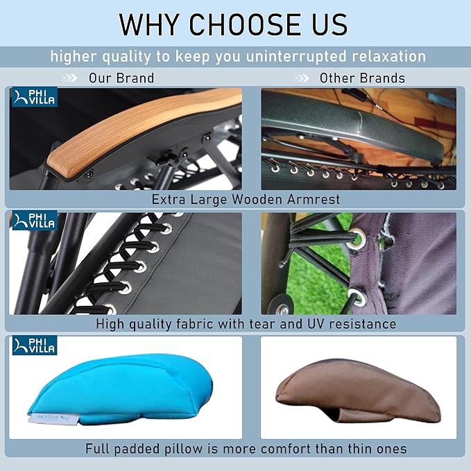 - No assembly: Easy folding and compact structure is suitable for any patio occasions, such as poolside, yard, beach or balcony. We provide 12 months warranty and lifetime customer support. Please just contact Phi Villa customer service if you have any issue with our product