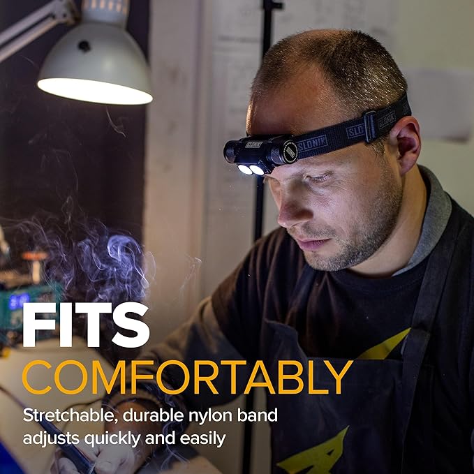 - Built To Last: The SLONIK headlamp is your go-to for rugged adventures. Our rechargeable head lamp is made of aero-grade aluminum, it's dustproof and IPX4 waterproof, ready for camping, hiking, and more. Designed to withstand extreme conditions, it's a reliable companion for all your outdoor activities