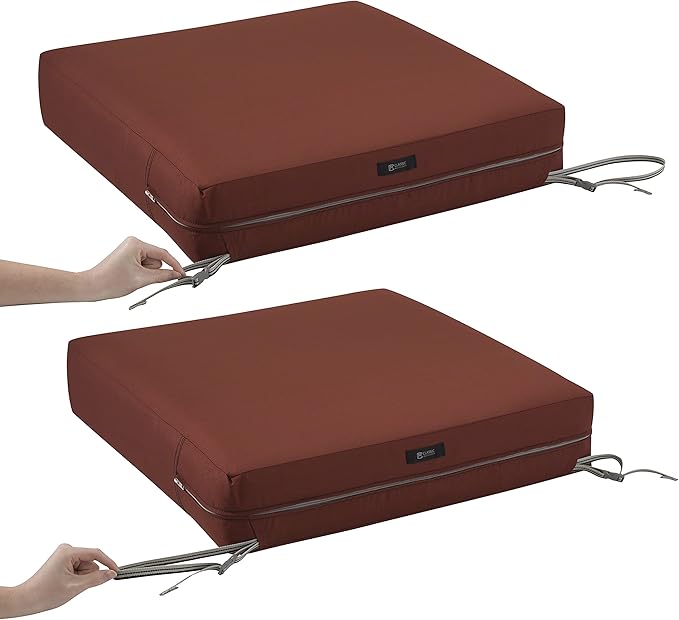 Classic Accessories Ravenna Water-Resistant 25 x 25 x 5 Inch Square Patio Seat Cushion Slip Cover & Foam, Spice, Lounge Chair Cushion
