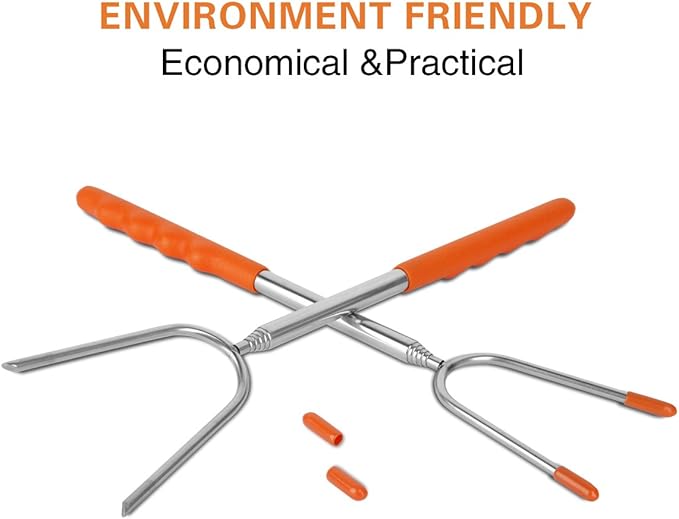 - ♣SUPERIOR MATERIAL: The fork tip is made of premium quality 304 stainless steel which to ensure no rusting & safe roasting. And the telescopic pole is made of strong stainless material which could hold the food steadily. Comfortable and premium PVC handle with finger indents protects your hands by giving a firm, steady grip. And it also offers excellent durability, resistance to chemicals, abrasion and does well in heat insulation.