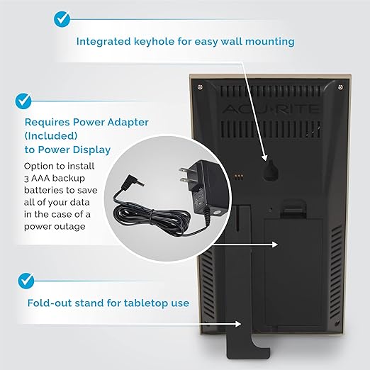 - Multiple Placement Options: Optimize your weather center with this home weather station with a built-in kickstand for table placement and a back keyhole for easy wall hanging โ or bolster your RV gadgets for camping safety