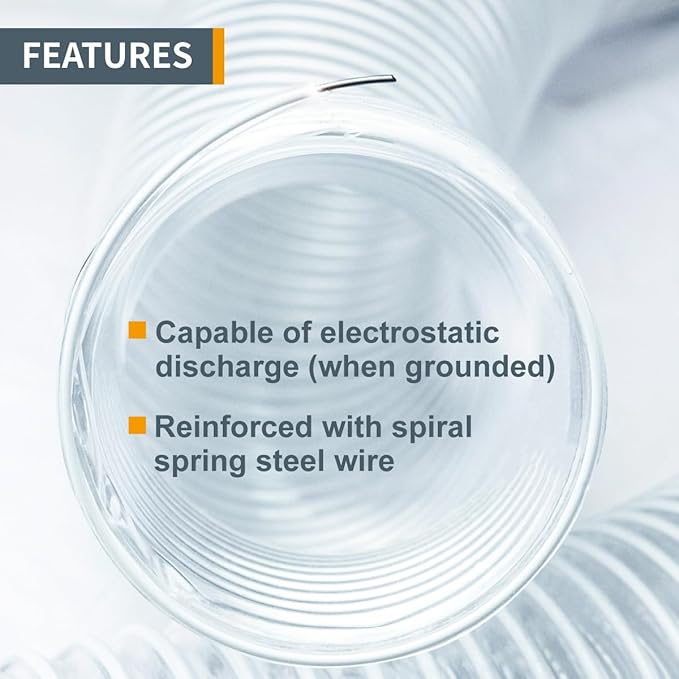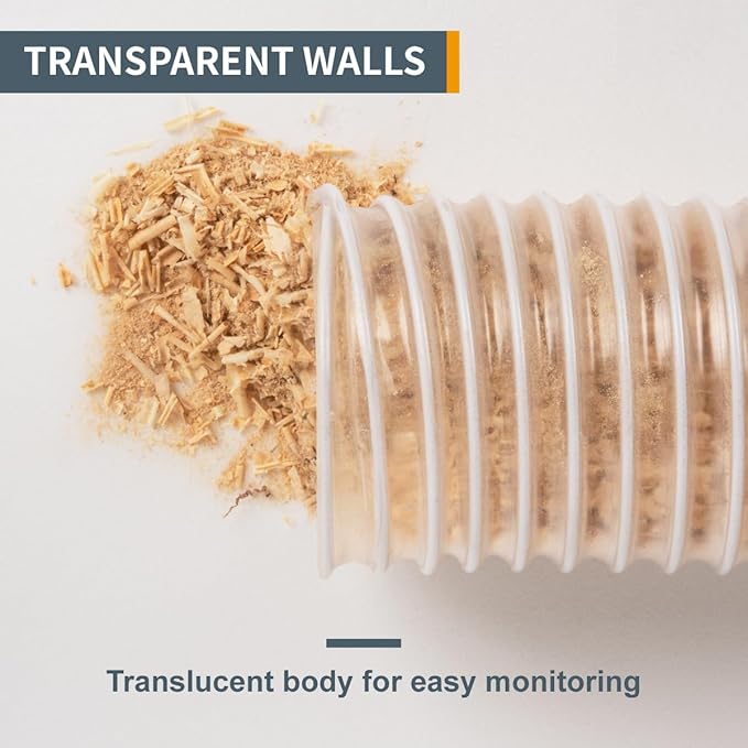 - INCLUDES: (1) 4 in. x 10 ft. left spiral transparent dust collector hose and (2) thumb screw 4 in. key hose clamps