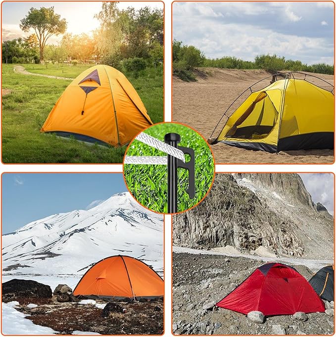 - Versatile Use: Our camping stakes are versatile and ideal for securing tents, awnings, canopies, tarps, and outdoor equipment during camping, hiking, and other outdoor adventures.With a pack of 8 camping stakes , you can use them not only for your tent but also for other purposes such as securing a rainfly, guylines, or even setting up a tarp shelter.