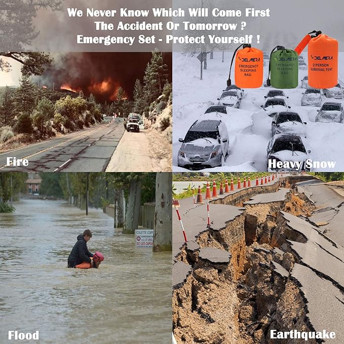- Emergency Use and Extra-Thick Tear—Delmera Emergency Thermal Mylar Bags are ideal for all emergencies, such as travel,hunting,camping,climbing,fish on the sea. Your ultra-lightweight survival sleeping bag is constructed of 26um extra-thick mylar material with a tear and puncture resistant coating so it stands up to extreme conditions