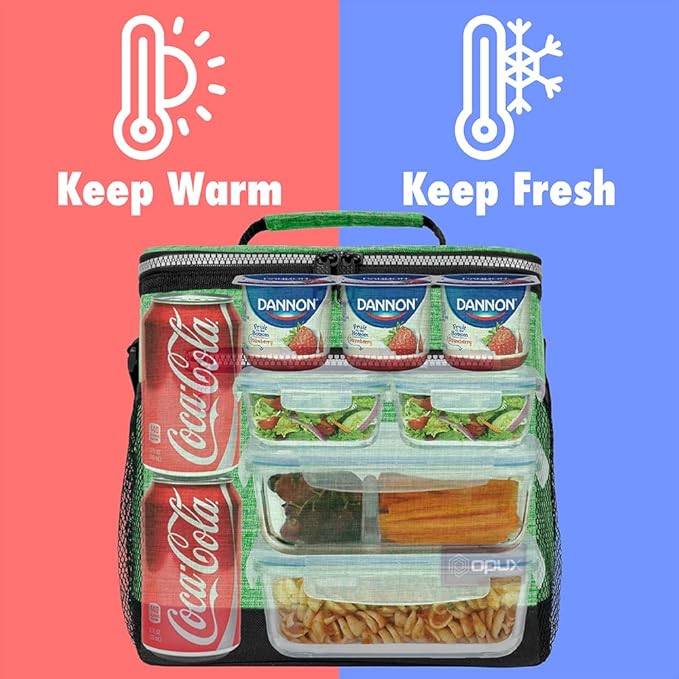 - CONVENIENT TO CARRY: Lunchbox for work is portable and collapsible for easy storage. The medium lunch bag has a top handle and adjustable long strap that allows you to carry it multiple ways.