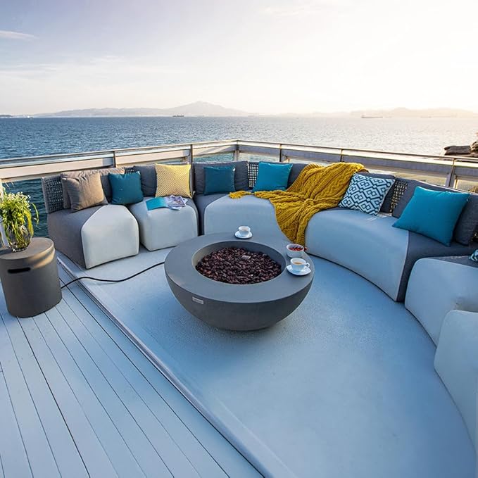 Elementi Lunar Fire Bowl Outdoor Gas Firepit Table 42 Inches Natural Gas Fire Pit Patio Heater Concrete High Floor Clearance Firepits Electronic Ignition Backyard Fireplace Cover Lava Rock Included