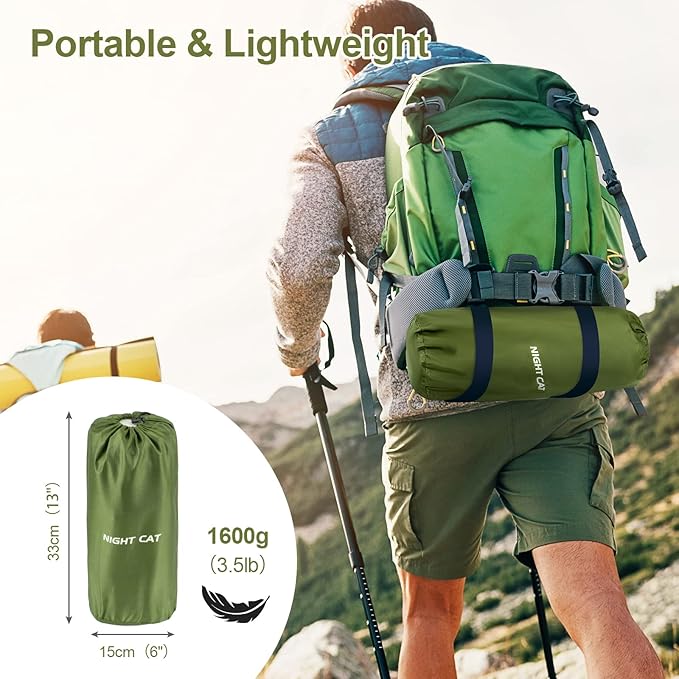 - 【Double Built-in Pillows】Two separated pillows,no need to worry about any movements that might bother your partner. The Foot pump also thoughtfully designed in the middle, both sides can stretch your feet freely.Night Cat Inflatable Sleeping Pad provide better sleeping quality for you at outdoors.