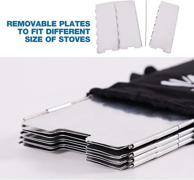 - ▶STURDY: REDCAMP stove windshield has 9 removable plates to fit different size of stove and high quality aluminum alloy material with superior finish, durable and abrasive resistance