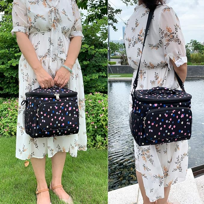 - ✿ Comfortable Wear:The great thermal lunch kit is crafted, easy to carry with comfort-grip handle and removable and detachable shoulder strap.You can carry the bag by the handles when you use the top handle, and also it could be used as a crossbody bag or a shoulder bag when you use the 48" strap.Its durable and easy to pull zippers will never trouble you.