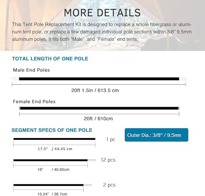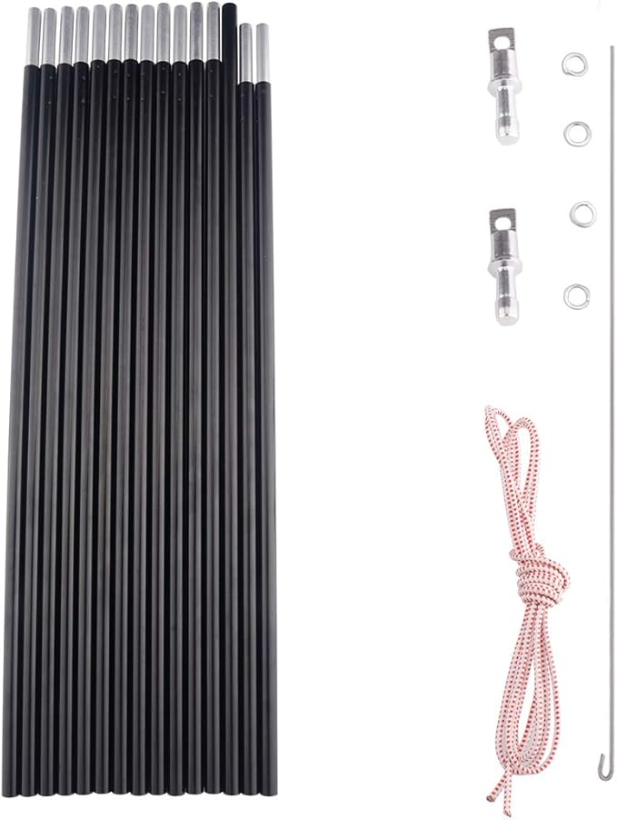 - GIVE SECOND LIFE TO OLD TENT & CUT WEIGHT - With a few steps’ installation or even a couple of cuts, you can bring your old and beloved tent to a prolonged life. One pole only weighs 0.89lb, and measures 17.5” long after assembled. It is wise to discard your heavy fiberglass poles to revamp your old tent to a lightweight backing tent.