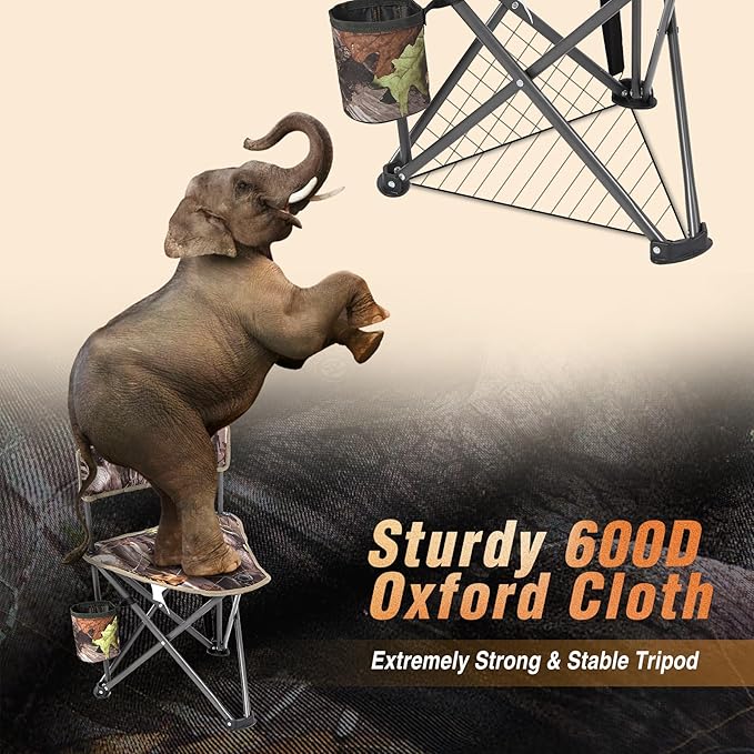 - Sturdy & Durable: The hunting chairs are made of 600D Oxford Cloth, solid and sturdy, not easy to tear or break. The “x” shaped powder coated steel frame are sturdy and durable, Together with reinforced sewing ensures it can support up to 225lbs/102kg.