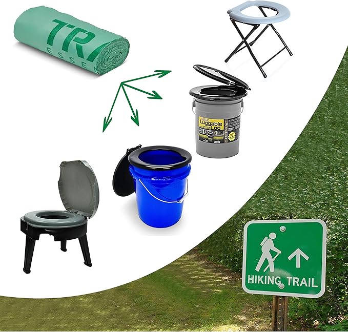 - SIMPLE SETUP, EASY DISPOSAL: Simply place bag around toilet, and do your thing. Then just bury the bag in the ground for eco-friendly convenience; No more carrying out! Bags stretch to fit snugly around portable toilet seats so they won’t fall down during use.