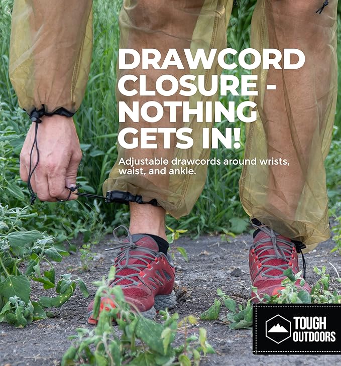 - Secure Fit, Full Coverage: Adjustable drawcords block bugs at wrists, waist, and ankles. This mosquito net suit keeps your bug suits for men secure as you move, paddle, or jump all day.