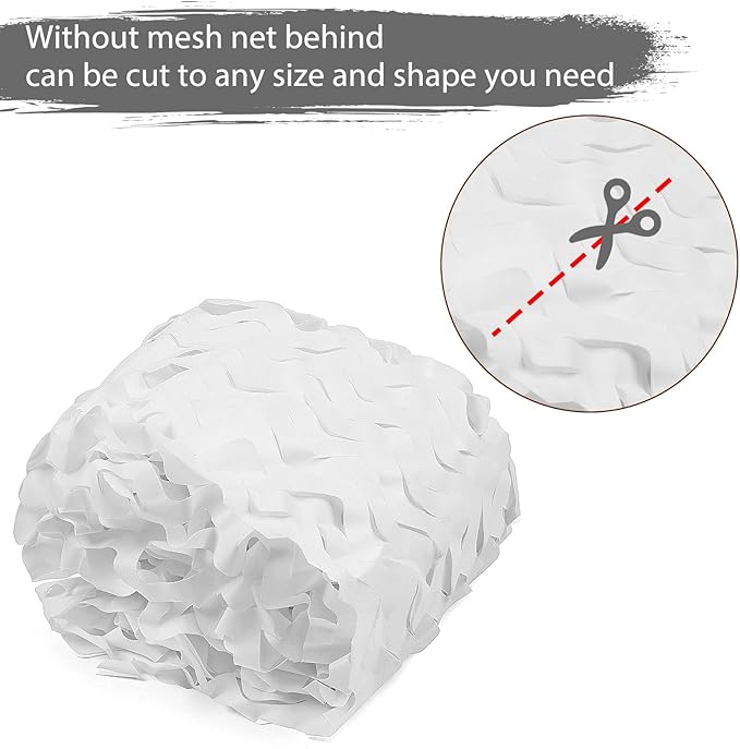 - Free Cutting: Camouflage netting can be easily cut to any size; you can use the included zip ties to fix it. Camo net can match with a variety of background colors, so you can observe the surrounding terrain well, providing maximum concealment in the field