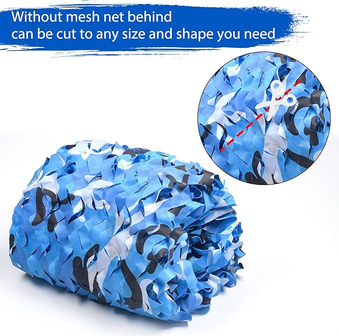 • Applicable Scenarios: Camo netting comes in a variety of colors and sizes, perfect for jungle theme decorations,military party decorations, hunting, house decoration, fencing, roof shade, camping, movie sets, bird watching, CS games, camo car covering etc. You are only limited by your imagination