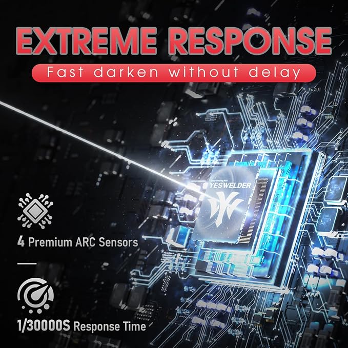 - Fast Auto-darkening: This auto darkening welding helmet features 4 Arc Sensors for reliable arc detection, ultra-fast switching (1/30000 sec), and adjustable Sensitivity and Delay controls for perfect performance