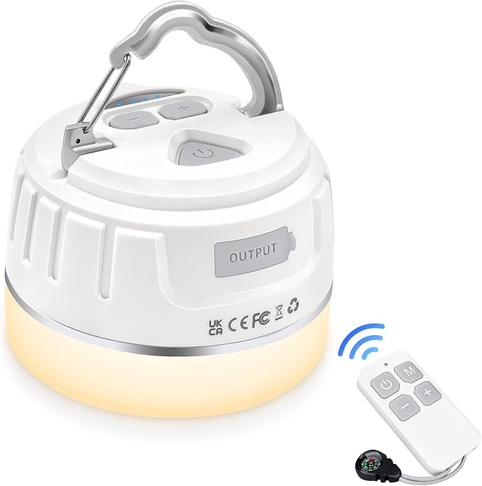 - ✅【Camping Lantern with Remote Control】Our camping lights ultimate convenience with our user-friendly remote control design. Seamlessly switch between modes and adjust brightness up to 10 meters /33 feet without leaving your seat. The remote control is intelligently designed for power-saving, automatically turning off after 12 hours of inactivity, with the remote control function temporarily disabled. Reactivate it by pressing any button on the camping lights&lantern.