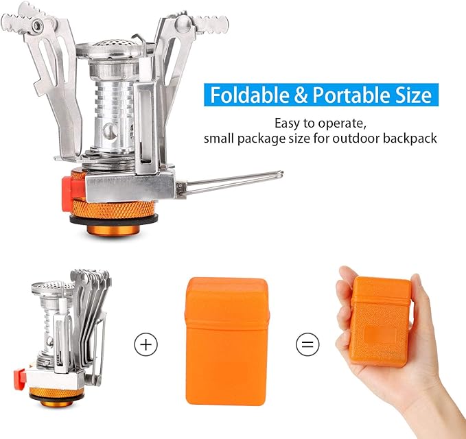 - Easy to Carry: Foldable handles on pot or stove can be folded to save space. Small size and portable, all the objects in this cooking set can be stored together in a mesh bag for convenient carry.