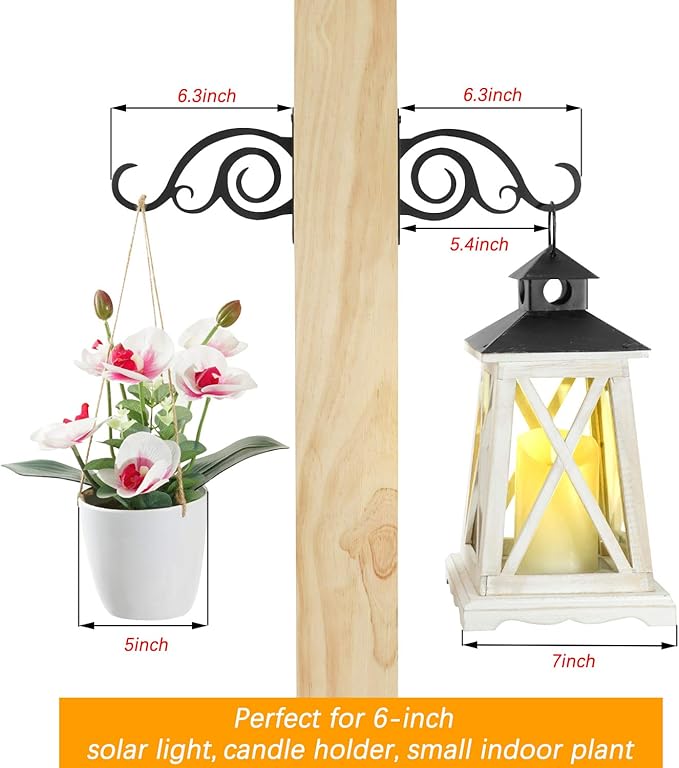 - Decorative Wall Hooks- Can hang up to 10-inch diameter lanterns, windchimes, potted plants, indoor planters, solar lights