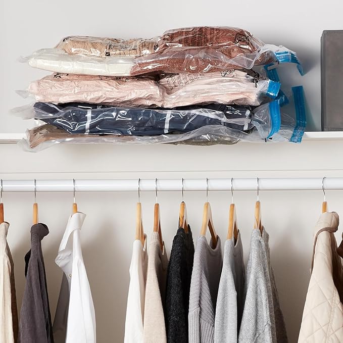 Amazon Basics Vacuum Compression Zipper Storage Bags With Hand Pump, Medium, Clear, 5-Pack, White, Sky Blue