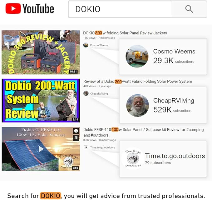 DOKIO 300W 18V Portable Solar Panel Kit Folding Solar Charger with 2 USB Outputs for 12v Batteries/Power Station AGM LiFePo4 RV Camping Trailer Car Marine