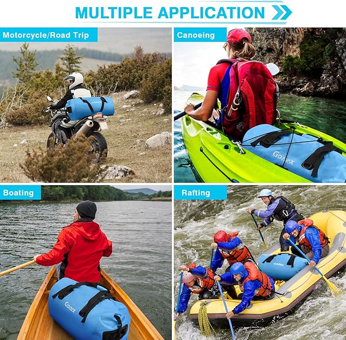 - Multiple uses: With its effective waterproofing, this waterproof dry bag is suitable for a wide range of outdoor activities, such as kayaking, paddleboarding, boating, motorcycle riding, rafting, fishing, diving, and other adventures.