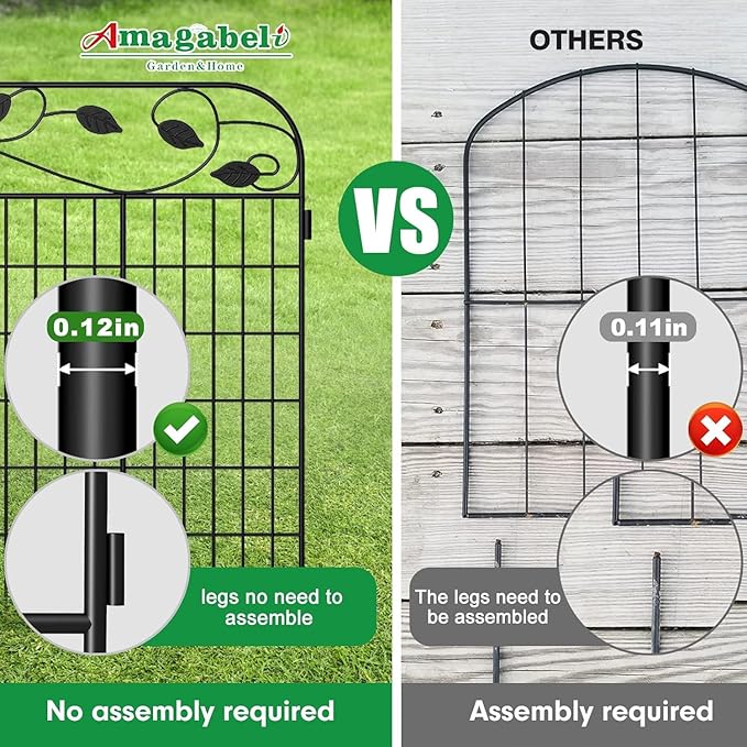 - No Assembly Required: Different with other garden fences borders on the market, each of fence panel is a single panel,no need to screw all the pieces together into one panel.This no dig fence doesn't need any tools,You can just insert them directly into the soil. Each metal fence panels could be connected easily by interlocking with the ring on the side, compared with the snap method,this Garden fencing are more flexible to expand into different shapes depending on your use.