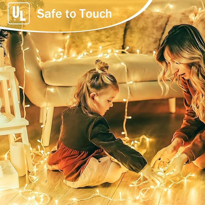 - Connectable String Lights Indoor Outdoor: These 66ft Christmas lights feature 200 warm white LEDs and offer a timer, memory function, waterproof construction, 13 lighting modes, and a connectable design. The fairy lights emit a warm, inviting glow, creating the perfect atmosphere for Christmas, weddings, dates, or everyday decorations. Effortlessly connect multiple strands to cover larger areas in rooms, gardens, and so on. Wrap your world in a soft, romantic radiance!