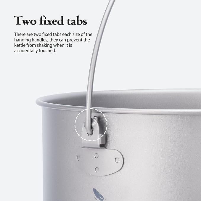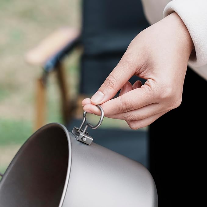 - These titanium hanging camping pots have catch points on the hanging ring links to prevent the camping pot from slipping when hanging or holding. The smallest 1300ml hanging pot can hold a G2 gas canister and small stove, making it very easy to take on the go.