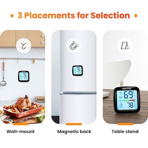 - Wide Applications with More Mounting Options: With a retractable stand, two powerful magnets and a wall-mount hole, this digital thermometer indoor can be easily attached to your refrigerator, wall or placed on a table. Suitable for baby’s room, nursery, office, closet, incubator, greenhouse, garden, wine cellar, basement critter terrarium etc. Note: This thermometer cannot connect to phones.