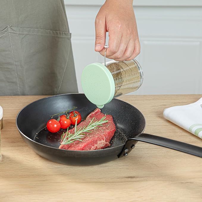 - LID INCLUDED: This spice shaker comes with a green perforated lid that forms a tight seal while still dispensing very fine seasonings. Ensure your food is delicious by adding fresh flavor!