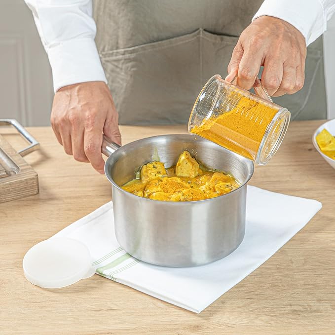 - LID INCLUDED: This spice shaker comes with a solid, non-perforated lid that forms a tight seal to ensure your ingredients stay fresh and delicious. Perfect for storing prepared garnishes!