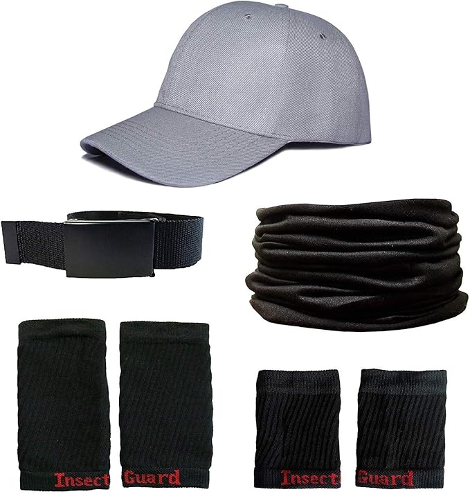 - One Size Fits All Up To Adult Medium. This package includes 1 Grey Hat, 1 Black Length Adjustable 54 Inch Fabric Belt, 1 Pair of Black 7 Inch Long Leg Tick Gaiters, 1 Pair of Black 4 Inch Long Tick Gaiters / Sleeve Cuffs and 1 Black Tube Bandana. Registered to Repel MOSQUITOES, TICKS, FLIES & Other Insects that may Carry and Transmit Viruses and Diseases like the ZIKA VIRUS, WEST NILE VIRUS and LYME DISEASE. Great as - gifts for women, gifts for men, gifts for mom and stocking stuffers!