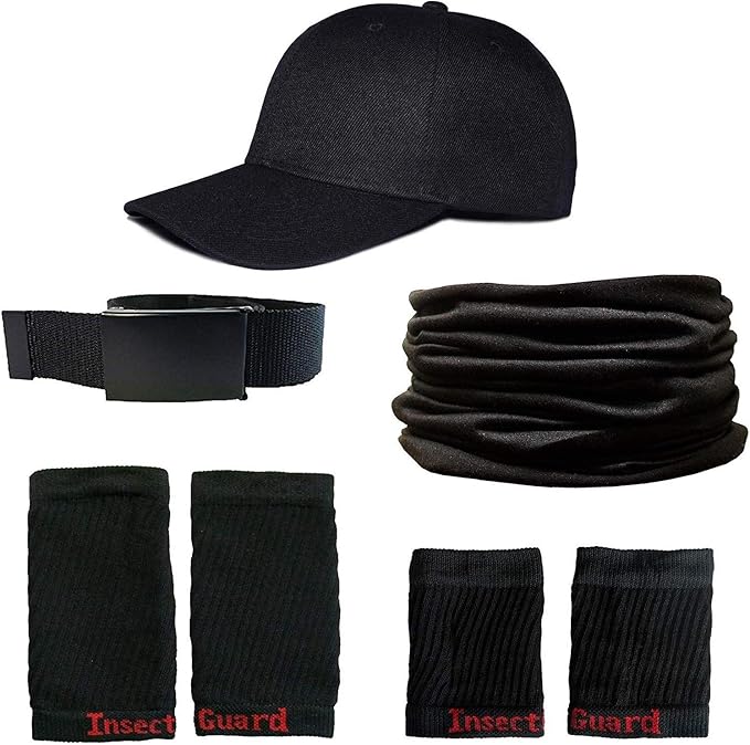 - One Size Fits All Up To Adult Large. This package includes 1 Black Hat, 1 Black Length Adjustable 54 Inch Fabric Belt, 1 Pair of Black 7 Inch Long Leg Tick Gaiters, 1 Pair of Black 4 Inch Long Tick Gaiters / Sleeve Cuffs and 1 Black Tube Bandana. Registered to Repel MOSQUITOES, TICKS, FLIES & Other Insects.. Great as - gifts for women, gifts for men, gifts for mom and stocking stuffers!