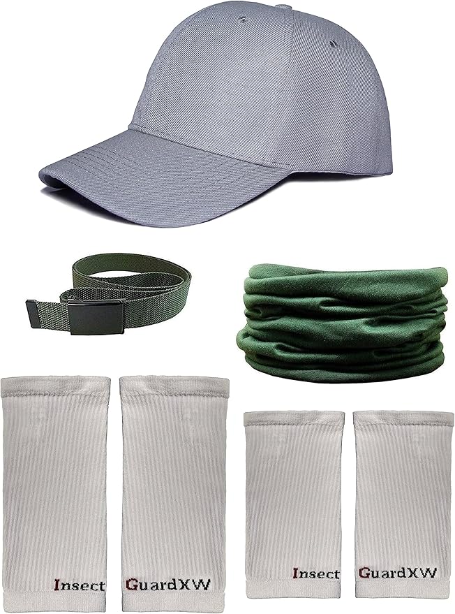 - This package includes 1 Grey Size Adjustable Hat, 1 Green Length Adjustable 54 Inch Fabric Belt, 1 Pair of White 12 Inch Long EXTRA WIDE Tick Gaiters / Sleeve Cuffs, 1 Pair of White 7 Inch Long EXTRA WIDE Tick Gaiters / Sleeve Cuffs and 1 Green Tube Bandana. Registered to Repel MOSQUITOES, TICKS, FLIES & Other Insects.. Great as - gifts for women, gifts for men, gifts for mom and stocking stuffers!